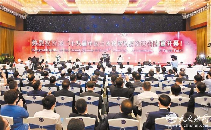 中国甘肃网7月8日讯 据甘肃日报报道(新甘肃·甘肃日报记者 李欣瑶 金鑫 张富贵)黄河之滨也很美,喜迎四海宾朋来。7日上午,第二十八届兰洽会开幕式暨丝绸之路合作发展高端论坛在兰州隆重举行。本届兰洽会以“深化务实合作、共创丝路繁荣”为主题,采取线上线下融合方式举办。