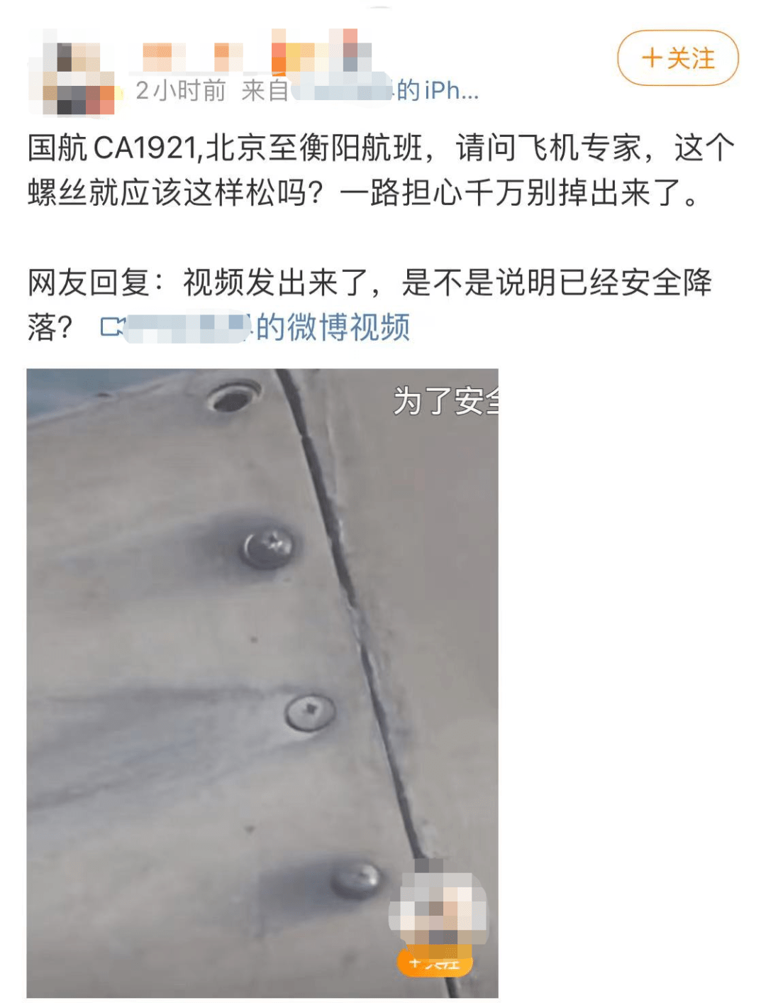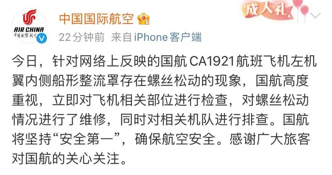 飞行中机翼螺丝松动?国航回应