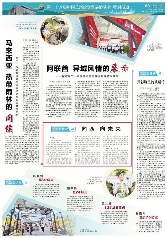 兰洽会开幕首日,主展馆人群熙攘。主宾国马来西亚和阿联酋国家馆里,处处洋溢着异域风情,海内外客商云集于此,相互观摩、相互交流,场面生动而热烈。在这里,向西开放,互联互通,合作交流的“朋友圈”不断扩大,推动共建“一带一路”高质量发展,是大家共同的美好愿景。