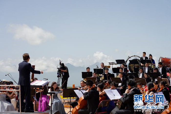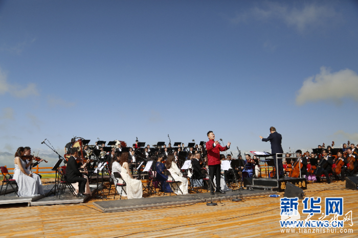 新华网西宁7月10日电(记者吕雪莉、李琳海、陈杰)伴着祁连山下的微风,高原大地架起舞台,绿色的群山和金黄的油菜花地为背景,观众徜徉在交响乐的柔波中……