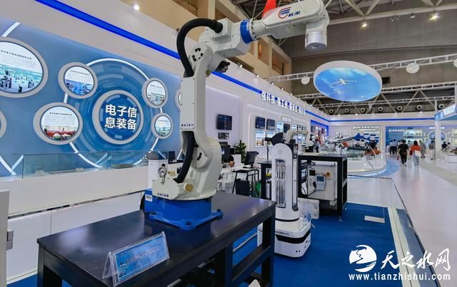 这是兰洽会主展馆先进装备馆展出的工业机器人。新华社记者 王铭禹 摄