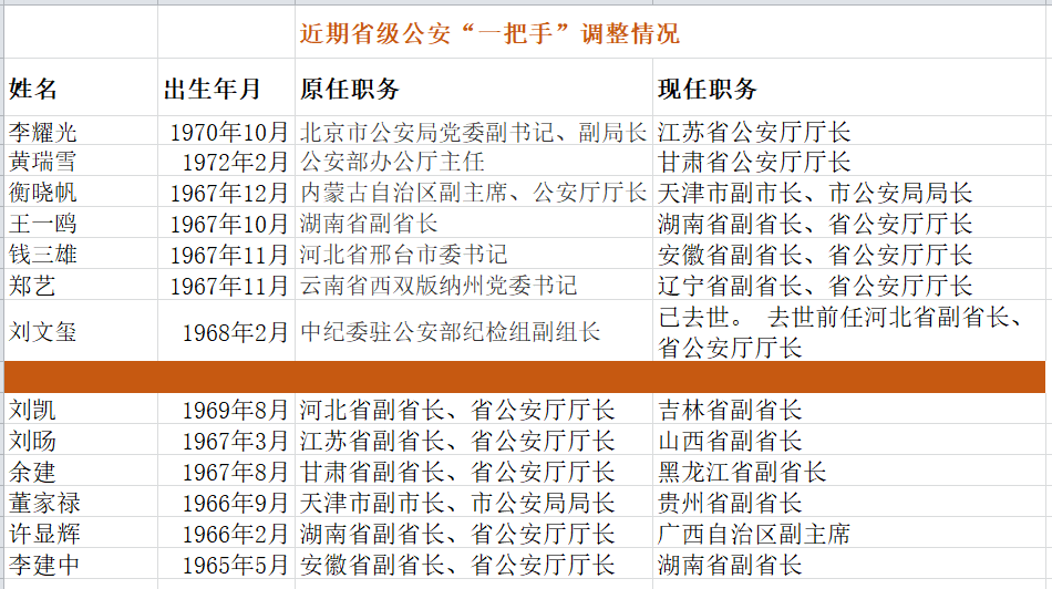 经过这轮调整,已有7个省份产生了新的公安厅(局)长,其中包括两名“70后”,均长期任职于公安系统。