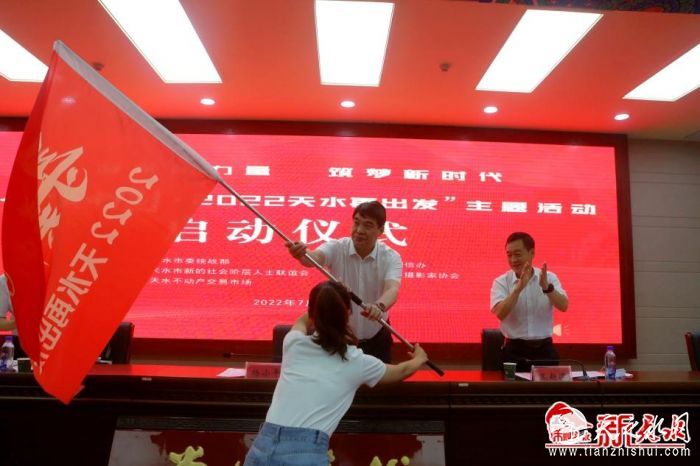 启动仪式上,宣读了《“凝聚新力量•筑梦新时代”——“寻美中国•2022天水再出发”主题活动实施方案》;网络人士代表宣读了倡议书;杨小平向寻美采风团进行了授旗。
