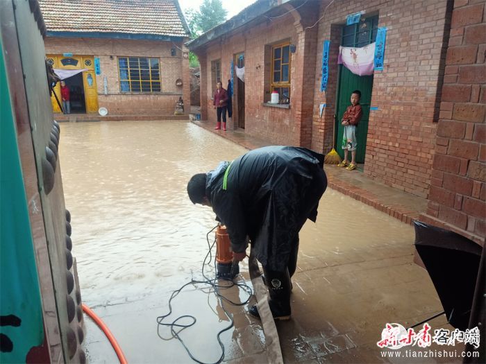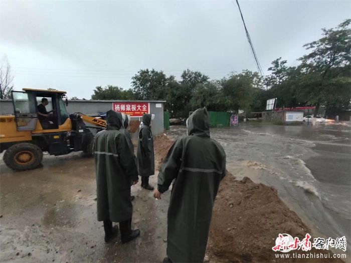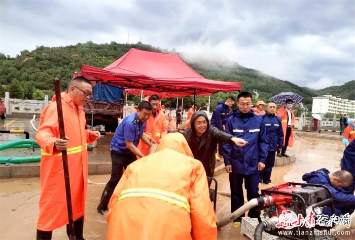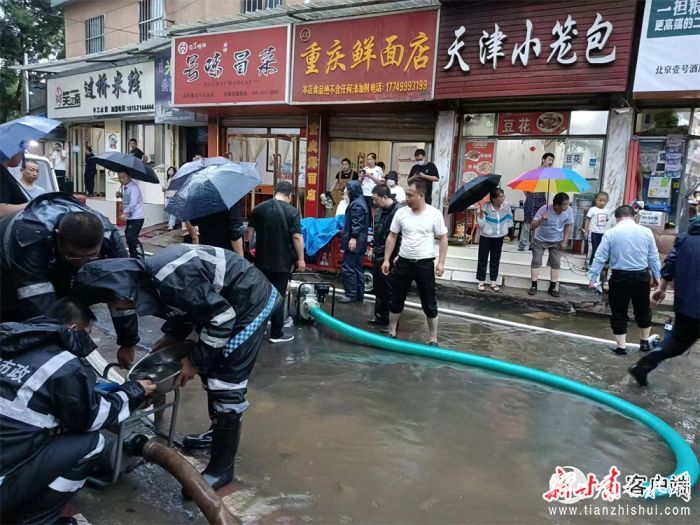 县城管、消防联合排涝。