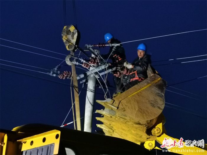 王咀子乡连夜抢修电路。