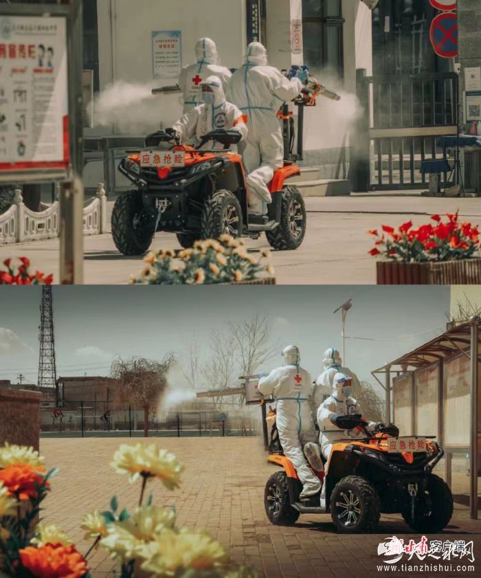 “兰州蓝”护卫者退役军人志愿服务队参与消杀。(兰州市退役军人事务局供图)