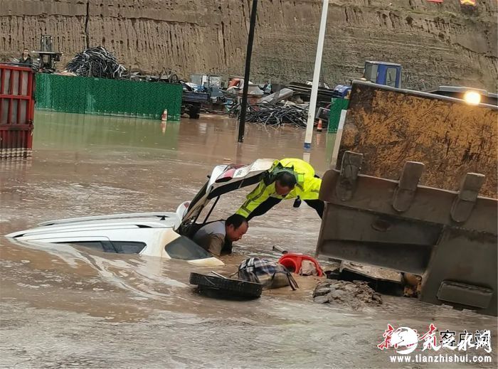 7月10日下午,金昌市金川区,武威市凉州区、古浪县突降大到暴雨,两市公安机关迅速启动恶劣天气应急预案,交警部门全员冒雨坚守岗位,分赴重点路口、路段加强指挥疏导,设置警示标志,组织警力将抛锚车辆推离积水区域并清理路面障碍物,确保道路安全畅通。