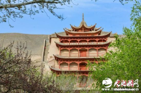 图为莫高窟九层楼外花红柳绿。 (资料图)王斌银 摄