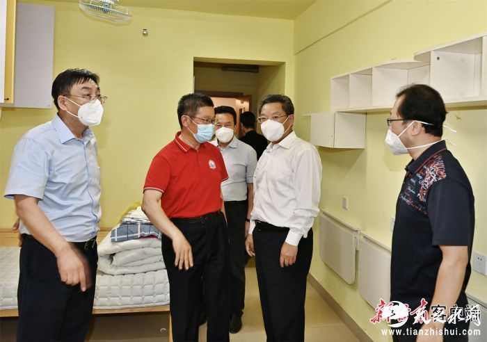 7月19日,省长、省疫情联防联控领导小组组长任振鹤在兰州市调研隔离场所储备工作。新甘肃·甘肃日报记者 盛学卿