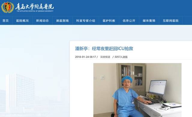2018年,青岛大学附属医院曾转载大众报业旗下“信网”关于潘新亭的报道,称其经常深夜加班,医术高超工作负责,不少病人都给他送过锦旗。