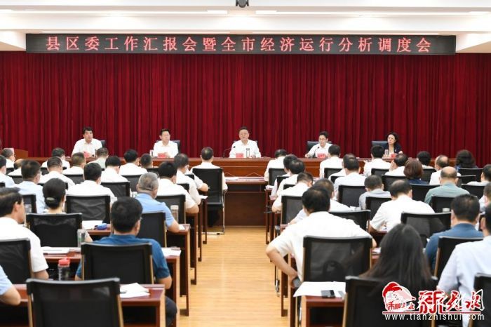 新天水讯【记者王晓馨】7月29日,市委书记冯文戈主持召开县区委工作汇报会暨全市经济运行分析调度会并讲话。他强调,要坚决贯彻党中央“疫情要防住、经济要稳住、发展要安全”的重要要求,认真落实党中央、国务院和省委、省政府决策部署,坚决扛起稳住经济大盘的政治责任,高效统筹疫情防控和经济社会发展,统筹发展和安全,深入实施“四强”行动,做深做细“五量”文章,正视困难、坚定信心、迎难而上,奋战三季度、决胜下半年,确保全年目标任务如期高质量完成。