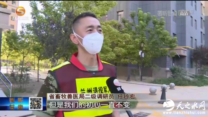 48岁任玲宏已经是第五次参加防疫工作,本轮疫情发生以来,他主动到兰州市社区疫情防控点,和社区工作人员一起布置检测场地、耐心疏导群众有序排队、提醒群众按规定佩戴口罩。