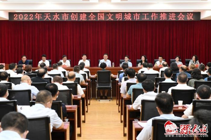新天水讯【记者王晓馨】8月4日,天水市委、市政府召开创建全国文明城市工作推进会议。市委书记冯文戈出席会议并讲话。他强调,要把创建文明城市作为满足人民群众对美好生活期待与向往的民生工程和民心工程,盯紧抓牢重点领域和关键环节,紧绷决战之弦,拼足攻坚之力,扛牢决胜之责,采取过硬措施,全面查漏补缺,全力以赴打好创城决战决胜攻坚战。