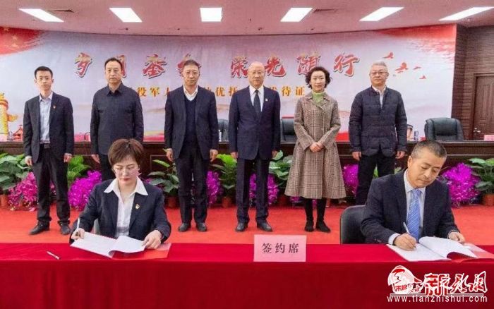 春风化雨,润物无声。我市历来重视激发调动社会力量投身拥军实践,建立实施党委政府主导与社会力量相结合的关爱尊崇军人和退役军人机制,广泛倡导和动员社会各层面参与关爱军人、退役军人的光荣社会事业中。40多家国有、省属、民营企业和社会组织申请悬挂《天水市拥军惠军合作单位》牌匾,以实际行动彰显爱心企业、公益组织的责任担当,在金融信贷、交通通信、餐饮服务、创业扶持、快递运输、商贸旅游、法律援助等各自领域开展社会化拥军共建工作,“民拥军”更加深入人心,军政军民大团结更加巩固。