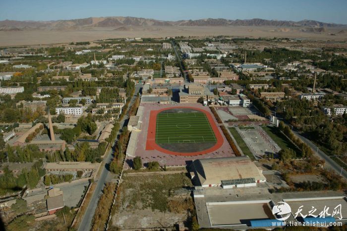 鸟瞰酒泉卫星发射中心(2003年10月13日摄)。 新华社发(秦宪安 摄)