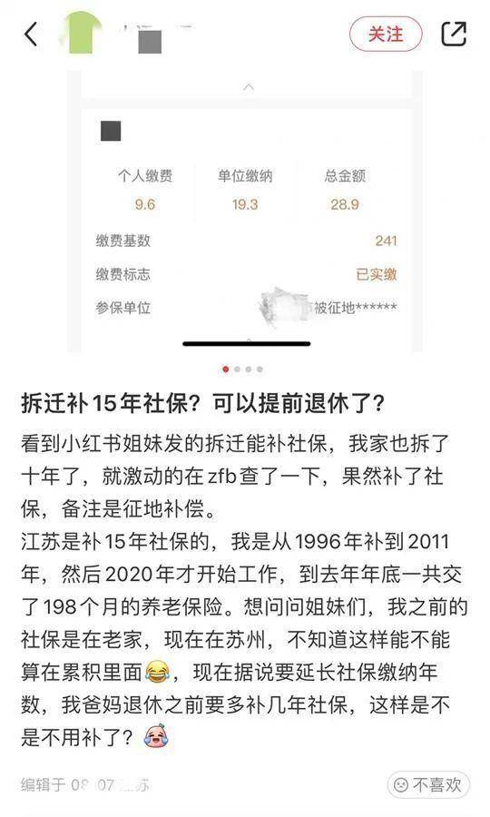 实际上,在社交平台上,因为家里拆迁而被补偿了社保的例子,其实不在少数。