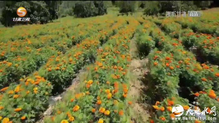 这几天,清水县草川铺镇的万寿菊相继开花,迎来头茬采摘季。金黄的花朵随风飘曳,花农穿梭在花海之中,采摘、销售到处一派忙碌的景象。