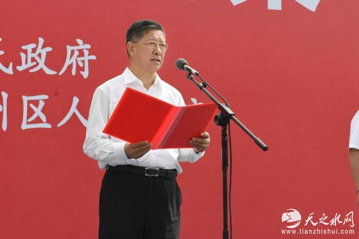 新天水讯【记者 王晓馨】8月13日上午,天水市2022年重大水利项目集中开工仪式在秦州区举行。省水利厅厅长朱建海出席仪式并致辞,市委书记冯文戈出席仪式并宣布项目开工。