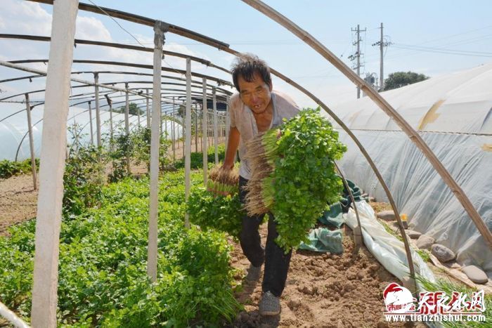 记者在宋庄村蔬菜种植基地看到,渭河川道区内设施大棚星罗棋布,一条条产业路纵横交错通向地头。一块设施基地内,露天种植的香菜鲜翠欲滴,宋庄村村民宋连德将采挖好的香菜扎成捆后,装进停在不远处的农用三轮车内。