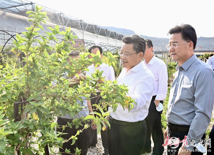 在定西市通渭县飞天粉丝食品有限公司、李店乡李店村金银花育苗基地和常河镇胜义村光伏产业园,任振鹤详细了解特色产业发展等情况。他强调,乡村振兴要靠产业,产业发展要有特色。要把朝阳产业、优势产业紧紧抓在手上,解放思想、因势利导、“特”字当先,找准发力点,探索突破点,依靠创新发展,适应市场需求,向特色要竞争力,向特色要生产力。要坚持政府市场“两手齐抓”、东西协作“牵线搭桥”、科研创新“协同发力”、引强扶壮“比翼齐飞”、各路人才“上山下乡”、融合发展“接二连三”,做强龙头、做大规模、做优品牌,延伸产业链、提高附加值,完善利益联结机制,带领更多群众走向共同富裕。