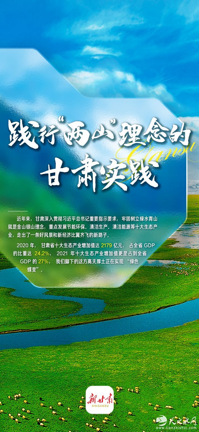 近年来,甘肃深入贯彻习近平总书记重要指示要求,牢固树立绿水青山就是金山银山理念,重点发展节能环保、清洁生产、清洁能源等十大生态产业,走出了一条好风景和新经济比翼齐飞的新路子。