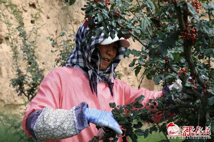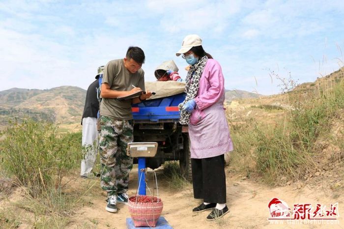 新天水讯【特约通讯员 郭永强 康正东 赵超】末伏,阳光依然剧烈。海拔1847米的武山县高楼镇马跛四湾山上855亩花椒种植基地,颗粒饱满的花椒“红了脸”,花椒工正把他们从尖刺中“请下来”,送上另一段“生命之旅”,满篮子的花椒聚在一起,让麻香味更浓,一首忙碌的丰收“椒”响曲在高山头热闹奏响。