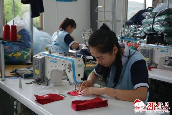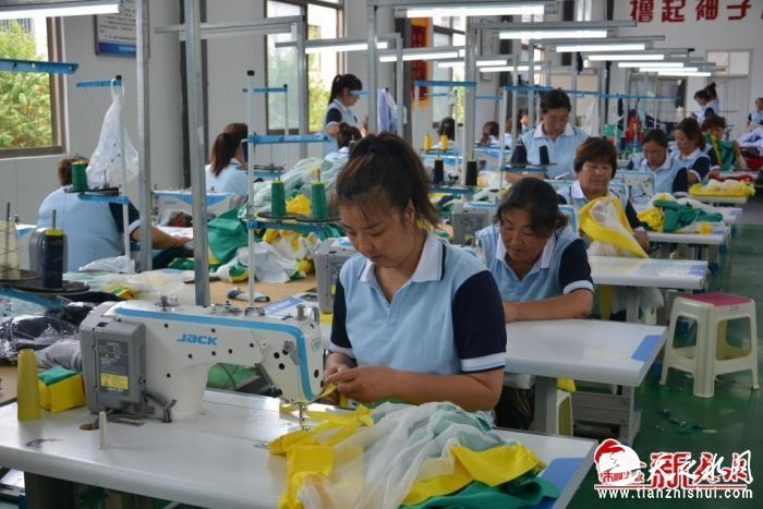8月16日,在位于麦积区麦积镇冯王新村易地搬迁安置点的天水卓特服饰有限公司就业帮扶车间里,员工们正在忙着赶制一批校服。