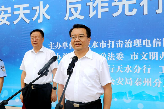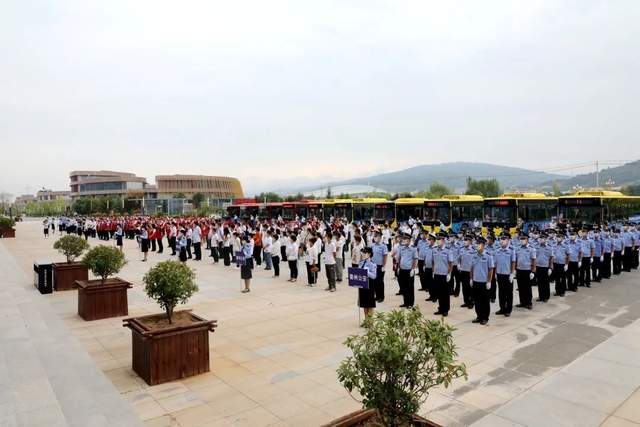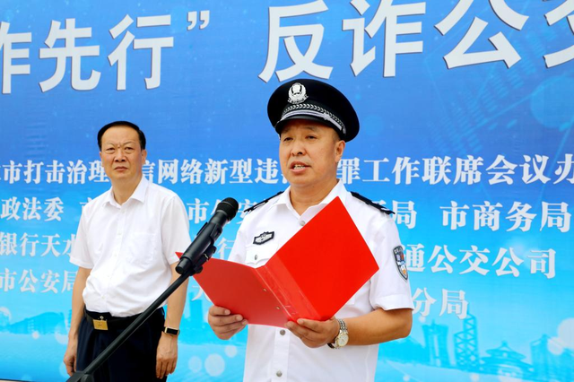 公安系统、乡镇街道、志愿者代表和农行天水分行、工行天水分行代表共计500余人参加反诈公交发车仪式。