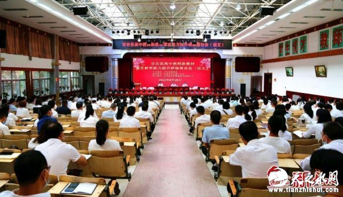 新天水讯【特约通讯员王建军 余文强】8月20日上午,甘谷县教育局组织开展高中教师新教材课堂教学能力提升研修培训,由江西金太阳教育集团名校研究院结合自身丰富的教师培训工作经验和专家资源,组织张辅良等9名全国著名专家对该县普通高中学校和初中“4+6”校九大学科1802名专任教师进行培训。