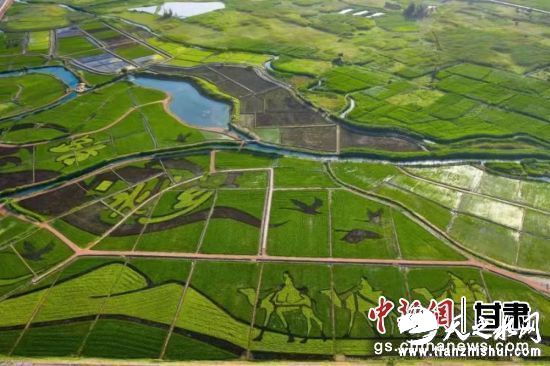 图为甘州区元丰村打造的“丝路飞天”彩色稻田景观带。甘州区委宣传部供图