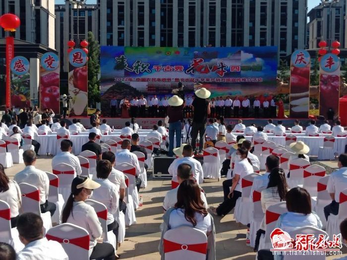 新天水讯【记者王晓馨 李旺旺】金秋送爽,硕果迎宾。9月6日,由中共天水市委、天水市人民政府主办,中共天水市麦积区委、天水市麦积区人民政府、天水市农业农村局承办,京东集团协办的“麦积千古秀 花牛四季情”——2022年“中国农民丰收节”暨天水花牛苹果产销对接宣传推介活动,在天水市麦积区马跑泉市政广场上火热开启。