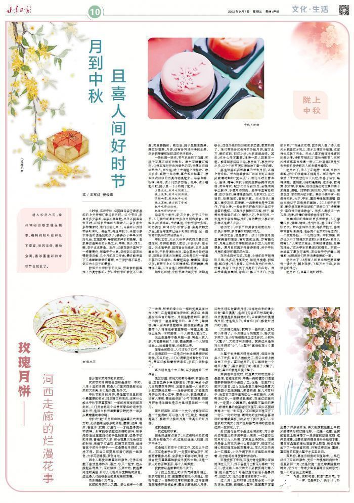 母亲那个年代,缺衣少食,对于过中秋节,人们美好的期盼大多在月饼和美食。而现在,物质丰盈,生活富足,中秋节形式多样,吃团圆饭、自驾出行、听音乐会、坐高铁朝发夕至,生活与往昔已经不可同日而语,但一些古老的民俗依然延续至今。