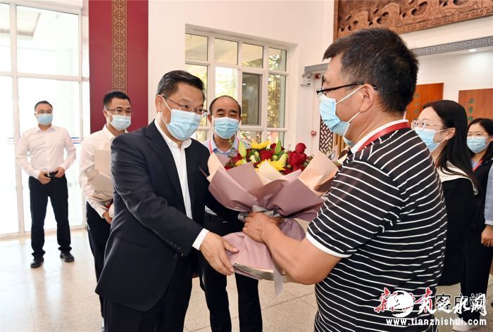 在兰州新区舟曲中学和兰州市第三十三中学,任振鹤实地察看校园环境、基础设施建设等,与教师代表、学校负责同志亲切交谈,详细了解学校历史、师资力量、办学特色等,并为教师代表送上鲜花和祝福。他指出,发展教育事业,广大教师责任重大、使命光荣。希望大家牢记习近平总书记殷切嘱托,不忘立德树人初心,牢记为党育人、为国育才使命,珍惜这份光荣,爱惜这份职业,按照“四有”标准严格要求自己、不断完善自己,坚持教书和育人、言传和身教相统一,切实以赤诚之心、奉献之心投身教育事业,既精通专业知识、做好“经师”,又涵养德行、成为“人师”,洁身自好、君子风范、钻研教学、热爱学生,努力成为“学高为师”的好老师、“身正为范”的大先生。