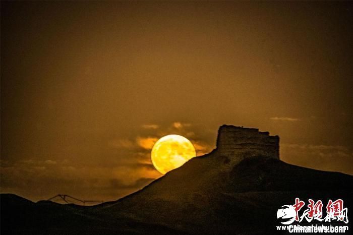 9月10日晚,一轮圆月冉冉升起在敦煌大漠阳关古烽燧之上。 王斌银 摄