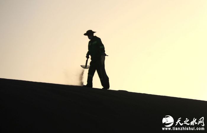 9月10日,保洁人员在甘肃敦煌市鸣沙山月牙泉景区保洁。新华社发(张晓亮 摄)