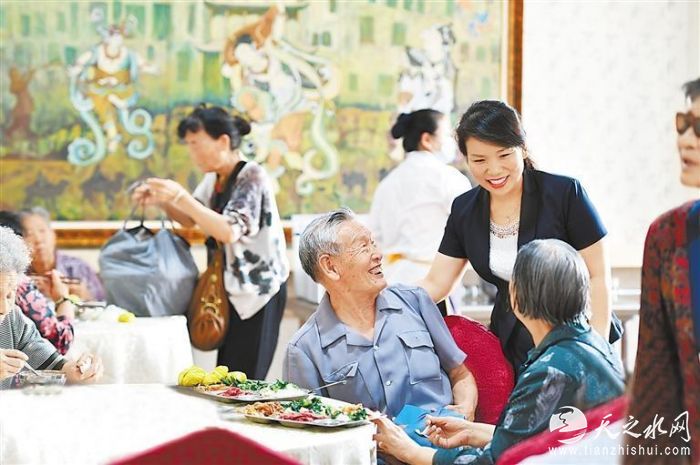 在兰州市城关区鸿瑞园虚拟养老院,餐厅工作人员热情地为老人们服务。 新甘肃·甘肃日报记者 盛学卿