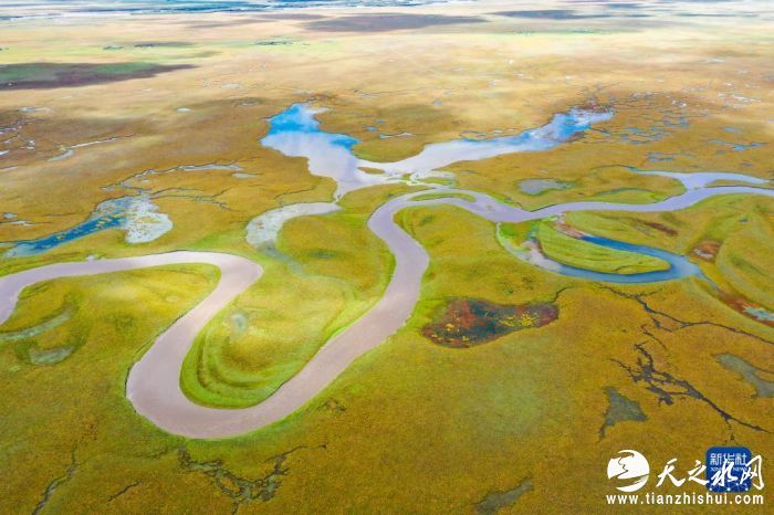 秋日里,位于甘肃省甘南藏族自治州玛曲县的阿万仓湿地风景如画。