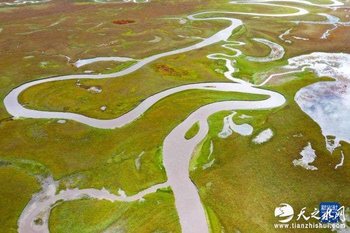 9月17日拍摄的阿万仓湿地风光(无人机照片)。新华社记者 郎兵兵 摄