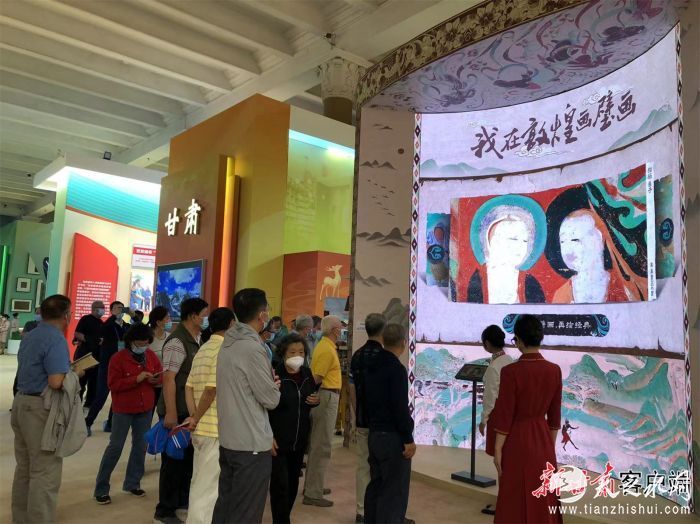 此次主题成就展设序厅、中央综合展区、地方展区、展望展区、室外展区和互动展区6个展区。甘肃单元位于北京展览馆5号馆,面积200余平方米,由“苦贫褪尽甘味来”“黄河之滨添壮美”“富民兴陇谱新篇”“丝路古道文脉兴”“陇原儿女多奇志”5部分组成,共展出代表性图片50张、视频5段、实物25件、模型4组。其中,“一户一策”脱贫计划、《脱贫攻坚责任书》等实物,真实展现了甘肃如期打赢脱贫攻坚战、552万农村贫困人口实现脱贫的重大成就;“电沙成金”——沙漠能源生态圈模型,展示了近年来我省持续推进生态文明建设取得的成果;采用仿真数字技术打造的“我在敦煌画壁画”互动项目、栩栩如生的祁连山雪豹模型、沉浸式阅读新方式《读者》朗读亭等,为观众带来全新的观展体验。