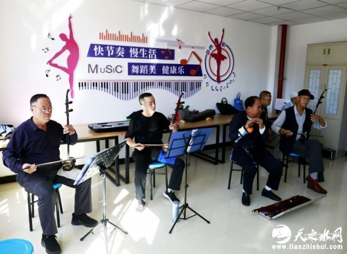 老人们在活动中心进行乐器表演(央广网发 白梅薇 摄)