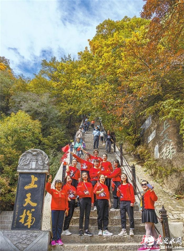 10月1日,游人在国家5A级风景区崆峒山游玩。新甘肃·甘肃日报通讯员 黄蔚林