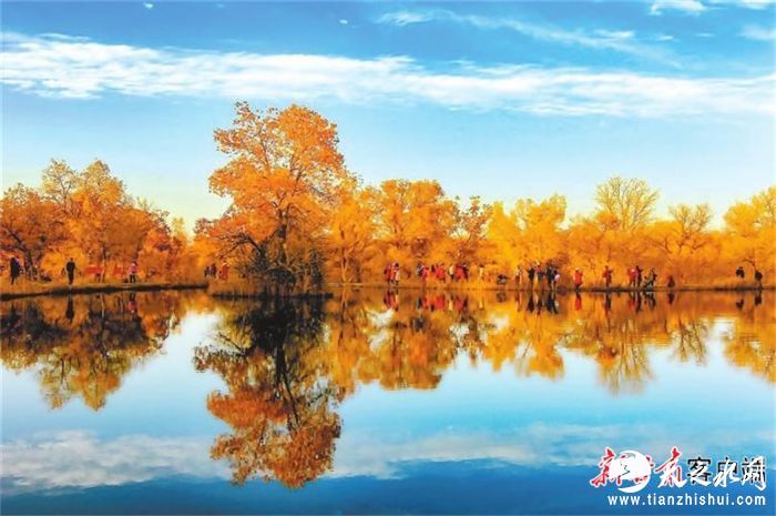 10月1日,金塔沙漠胡杨林景区层林尽染,金黄色的树叶在阳光的照耀下,美轮美奂。游客漫步其中,体验“碧云天,黄叶地,秋色连波”的独特魅力。山西游客高超说:“一直向往金塔沙漠胡杨林,今天终于来了。风景特别漂亮,尤其金波湖最美,令人流连忘返。”