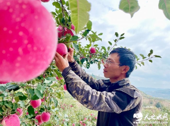 “我曾在上海一家外资企业工作,那时候,我一直关注家乡的苹果产业。后来返乡流转土地223亩,建成山地乔化密植型短枝红富士果园,目前果树长势良好,全部进入盛果期。通过线上和线下销售,每年收入将近200万元。”雷建华说。