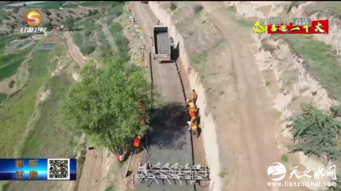 在武威清水镇台村,工人们过去正每浇浇灌水泥地面。经济、发展环境改善、百姓出行带来的幸福大道。