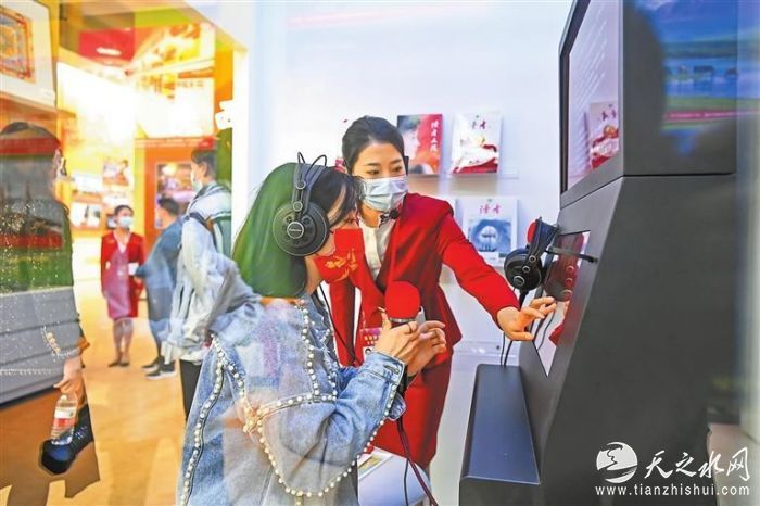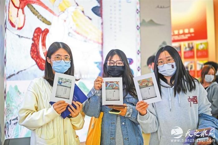 观众排队体验甘肃单元“我在敦煌画壁画”互动项目。