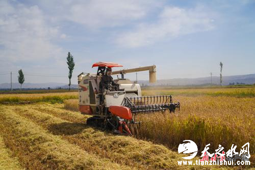 景泰五佛乡西源村,辰辰农业合作社水稻秋收开镰忙。