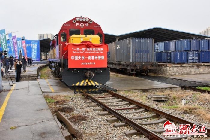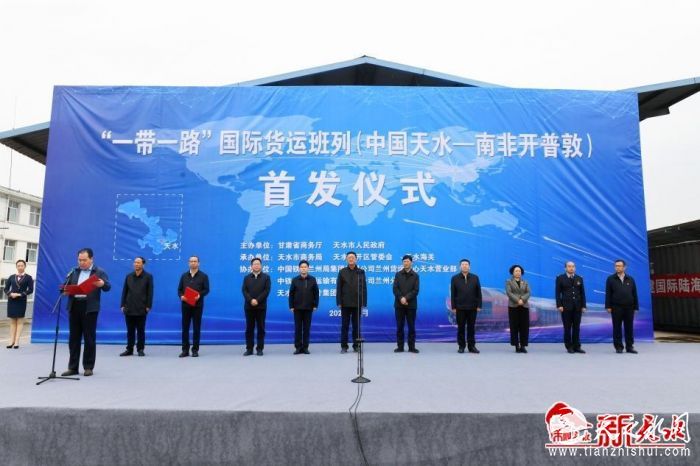新天水讯【记者 王晓馨】10月13日上午,“一带一路”国际货运班列(中国天水—南非开普敦)首发仪式在中国铁路兰州局集团有限公司兰州货运中心天水东货场举行。
