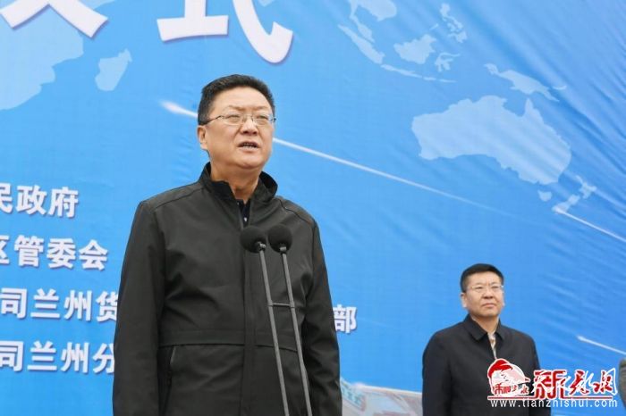 市委书记冯文戈出席仪式并宣布发车,省商务厅厅长张应华,甘肃省国际物流集团有限公司董事长王月成,市委副书记、市长王国先,市人大常委会主任张建杰,市政协主席王燕,中国铁路兰州局集团有限公司兰州货运中心党委副书记胡皓臻出席仪式。副市长董小平主持仪式。
