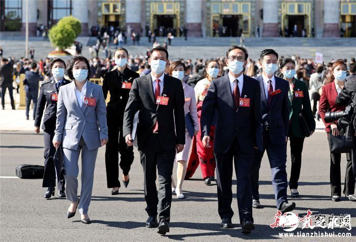 10月16日,中国共产党第二十次全国代表大会开幕会结束后,甘肃代表团代表满怀信心、步履坚定地走出人民大会堂。新甘肃·甘肃日报记者 高 樯