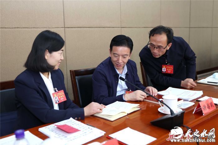 10月18日,出席党的二十大的甘肃省代表团的代表相互交流,认真讨论。新甘肃·甘肃日报记者 高 樯